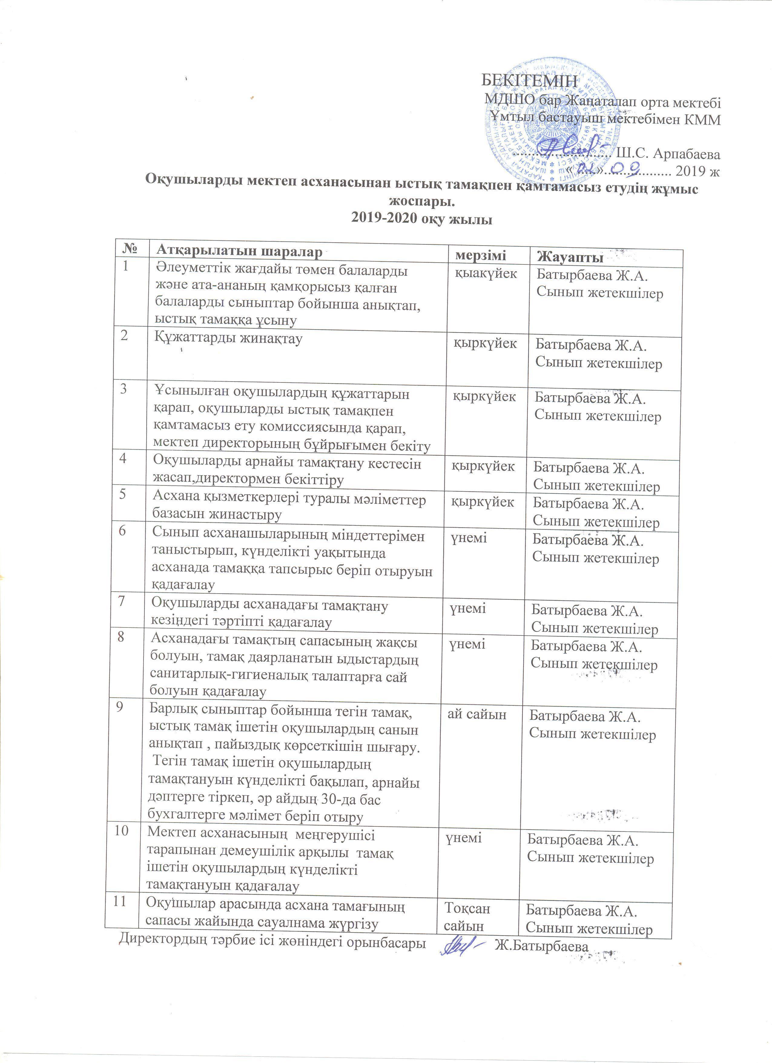 02 сентябрь 2019 0 1 2 3 4 5 Оқушыларды мектеп асханасынан ыстық тамақпен қамтамасыз етудің жұмыс жоспары