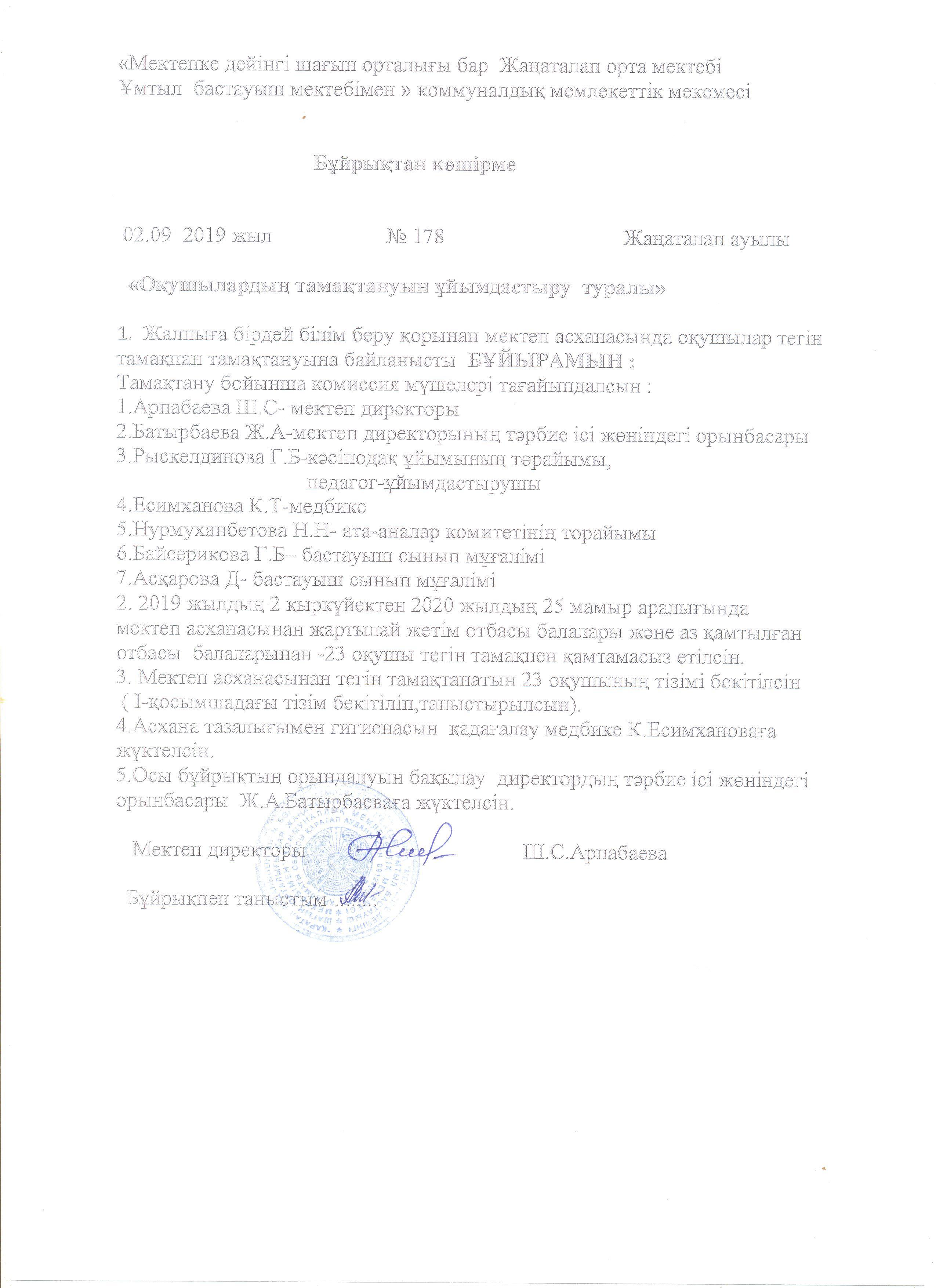 Оқушылардың тамақтануын ұйымдастыру туралы » МДШО бар Жаңаталап орта мектебі КММ